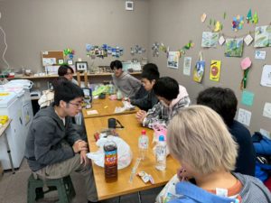 お団子を作りながら、自然と会話が生まれていきます。料理をしながら話すという場の力は大きく、「傾聴」という言葉がすとんと馴染む時間でした。学生たちは話すことよりもまず、隣に座って耳を傾けることを大切にしながら、住民さんたちと穏やかな時間を過ごしました。 住民さんの中には、昨年来てくれた学生のことを覚えていてくださった方も。「また来てくれたの」と顔をほころばせながら、近況を話してくださる姿がありました。継続した関わりだからこそ生まれる、温かなつながりです。