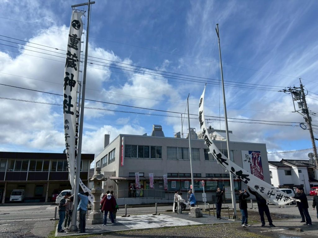 翌日は、重蔵神社の春祭りへ。準備から始まり、おみこしの巡業、そして片付けまでの一日を、地域の方々とともに担いました。
