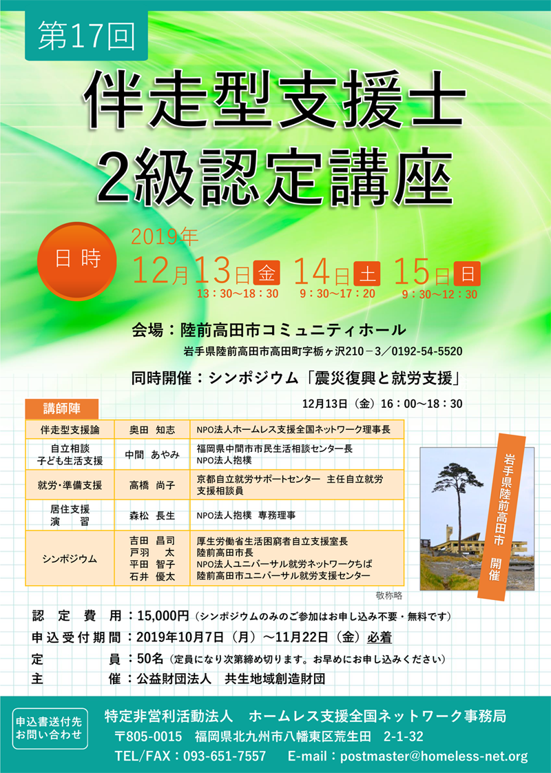 - 申込・お問合せ:NPO法人ホームレス支援全国ネットワーク