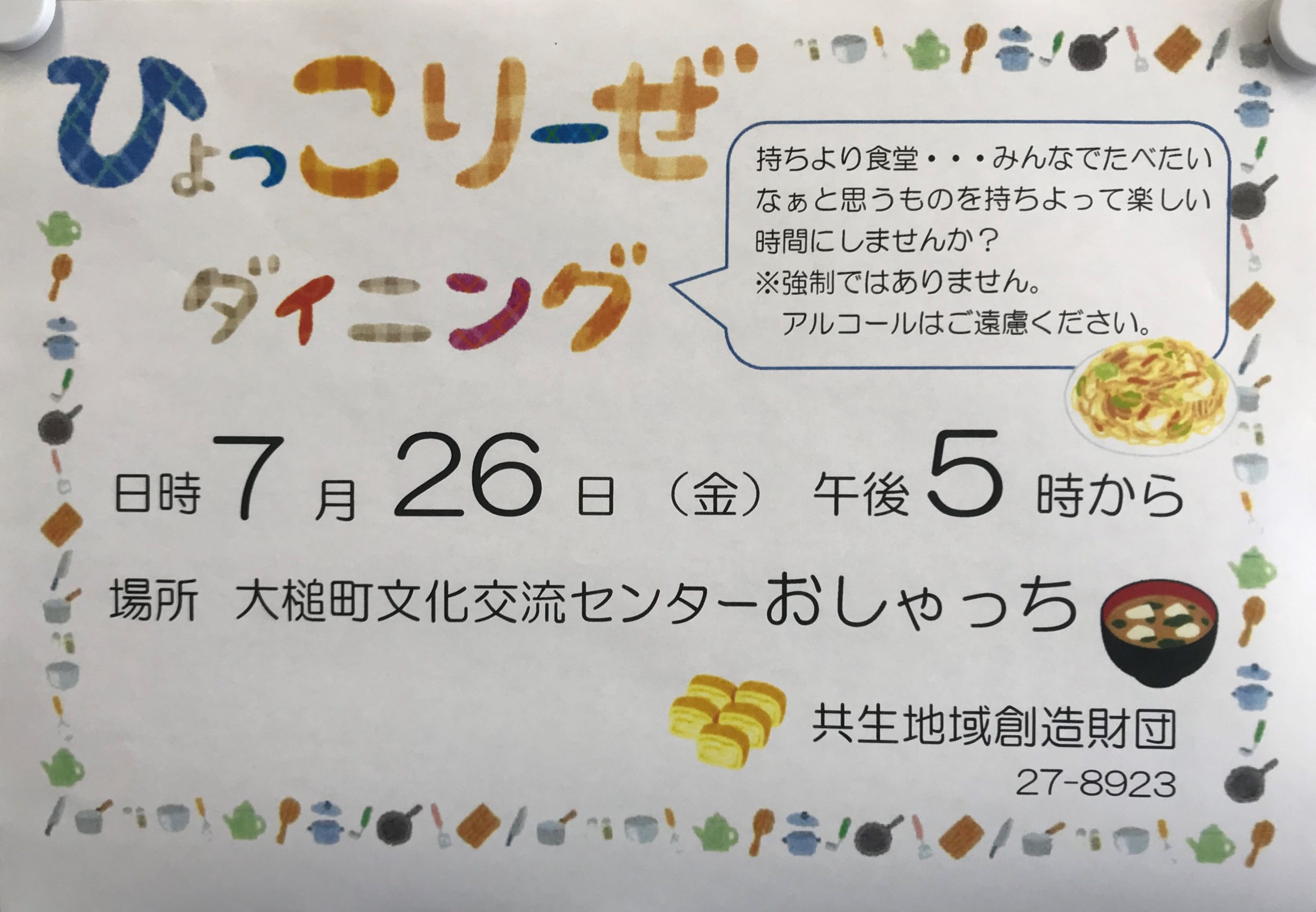 - 「ひょっこりーぜダイニング」開催します!