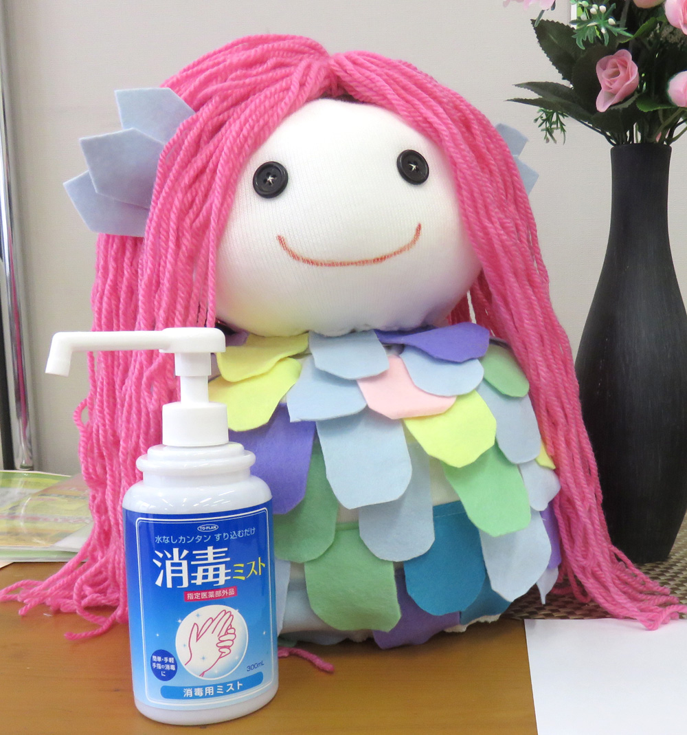 マスクのキットを用意していた時「アマビエ」がスタッフの間で話題になり、翌日出勤したら事務所にアマビエがいました!あまりの可愛さに思わずほっこりです。