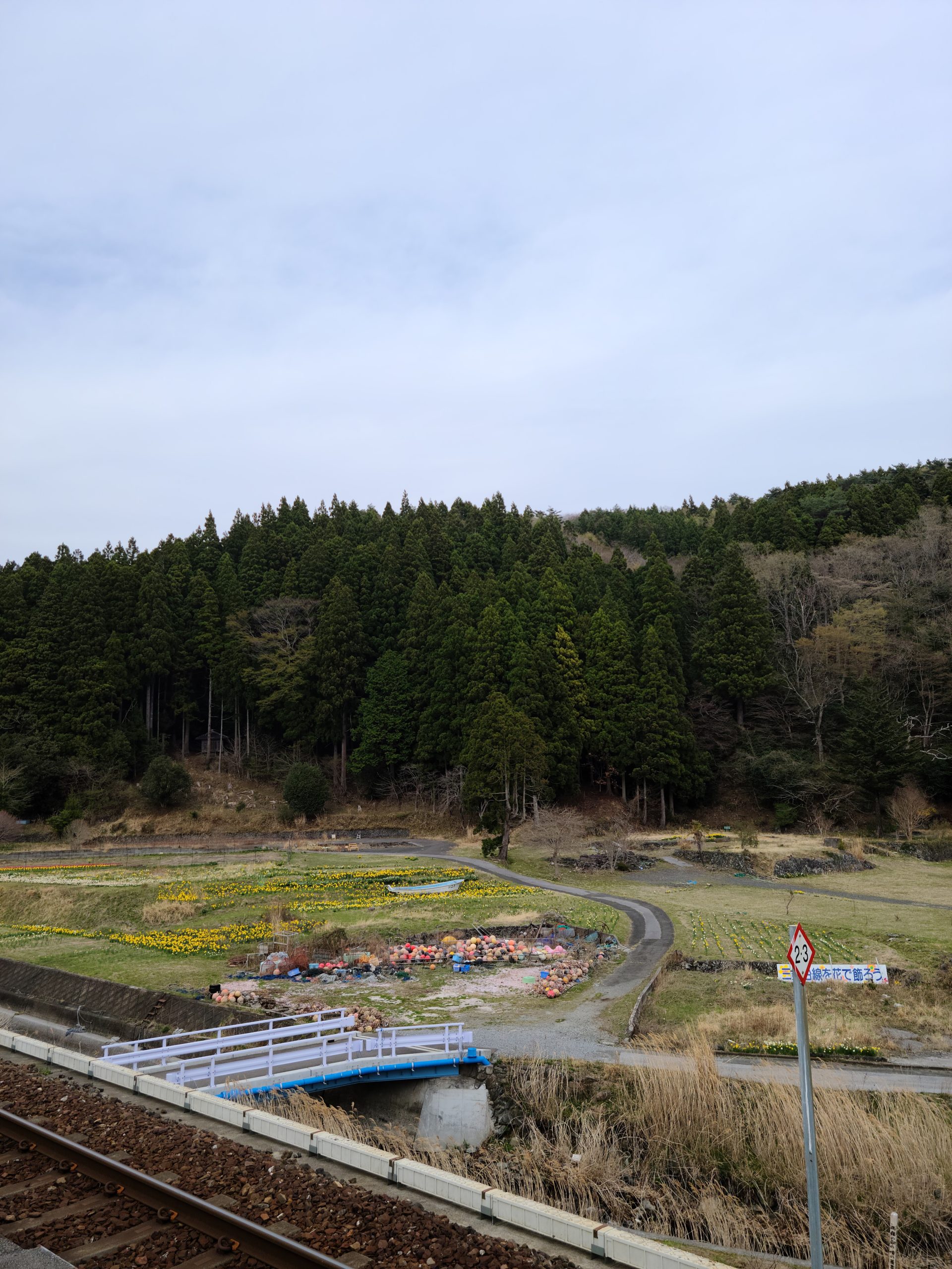 三陸鉄道沿いには水仙のお花畑が広がっていました。
