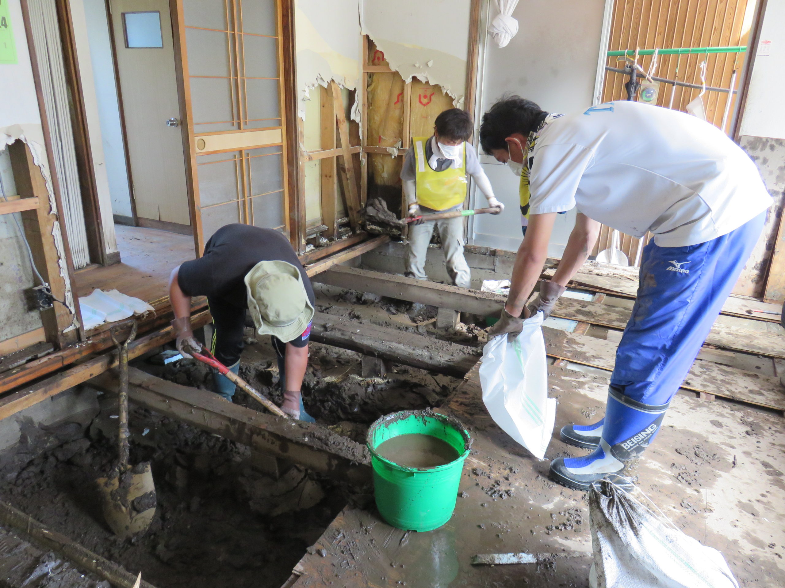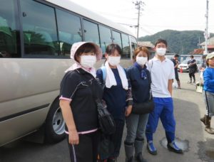 10月初旬から、大船渡事務所スタッフならびにその家族の有志がボランティアとして現地入りし、家屋の泥出し作業や片づけ作業を行った。二度にわたり、延べ12人が参加した。
