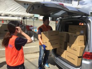 この間も物資支援は続きます。クリーンコープからの物資を運ぶ様子。