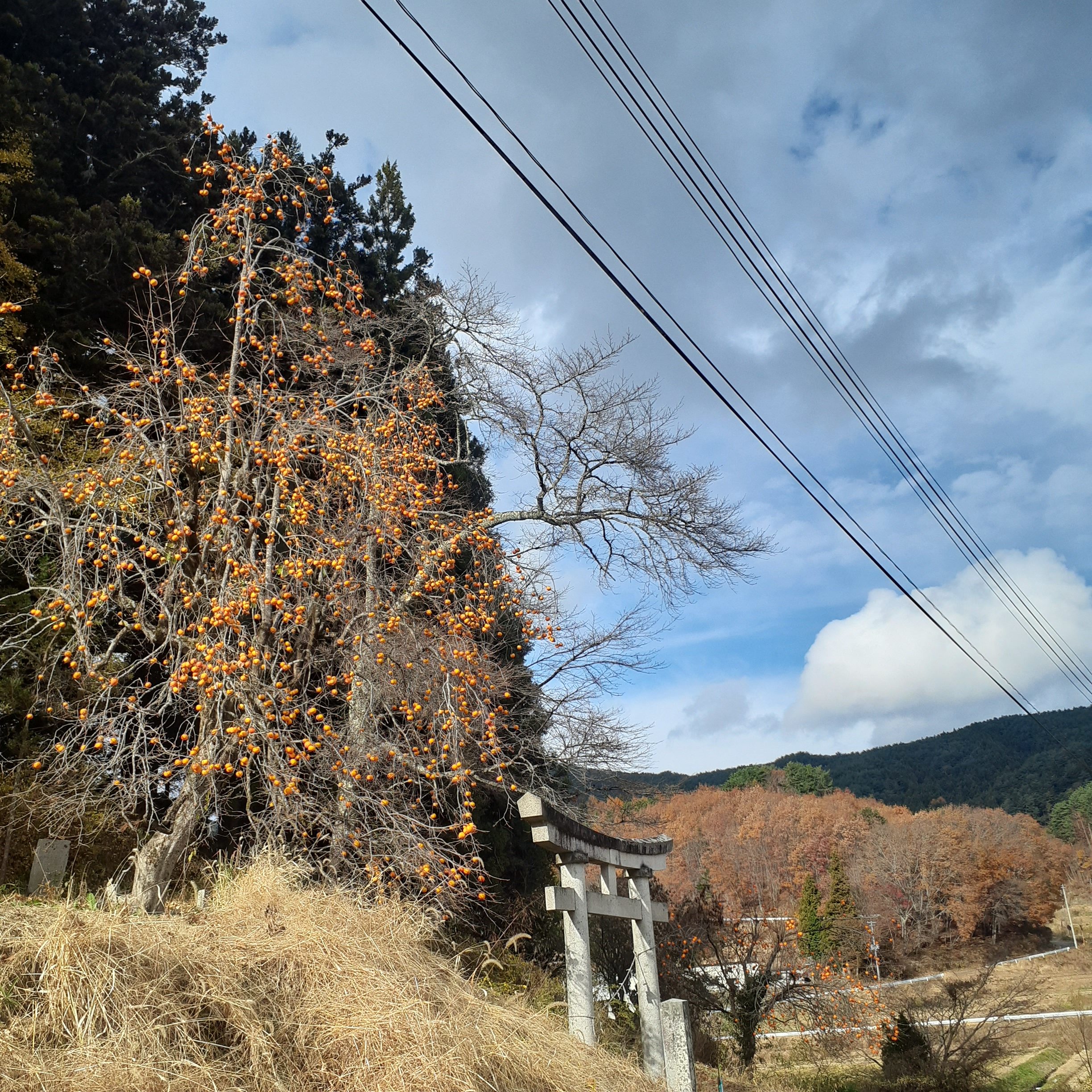 冬紅葉が存在感を増している、紅葉が終わりかけの葛尾村です。