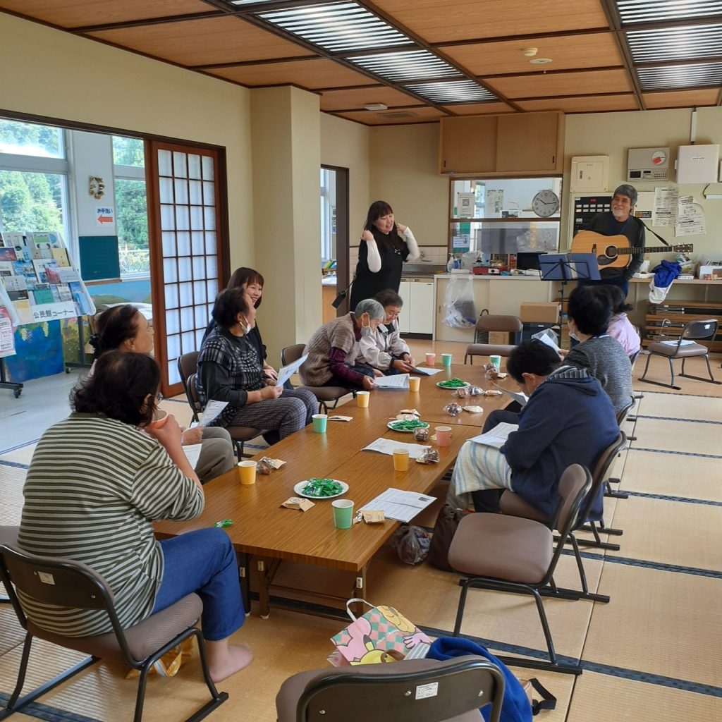 木曜日は岩井戸公民館でミニコンサート「みんなで歌おう」が開催されました。参加者は11名で、皆さん大きな声を出して楽しそうに参加していました。体操の先生の指揮のもと、軽く体操を行い、高齢の方にもできる簡単かつ愉快な体操でした。最後には、カレーライスを食べて公民館を後にしました。とてもおいしいカレーで、たくさんお代わりをしてしまいました。