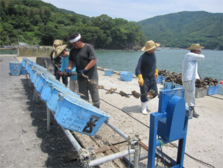 石巻市牡鹿半島の入り口に、折浜・蛤浜という漁港があります。20戸以下という非常に小さな漁村ですが、以前より牡蠣の養殖や定置網漁を行う活発な集落でした。